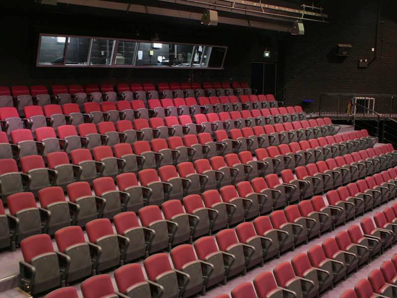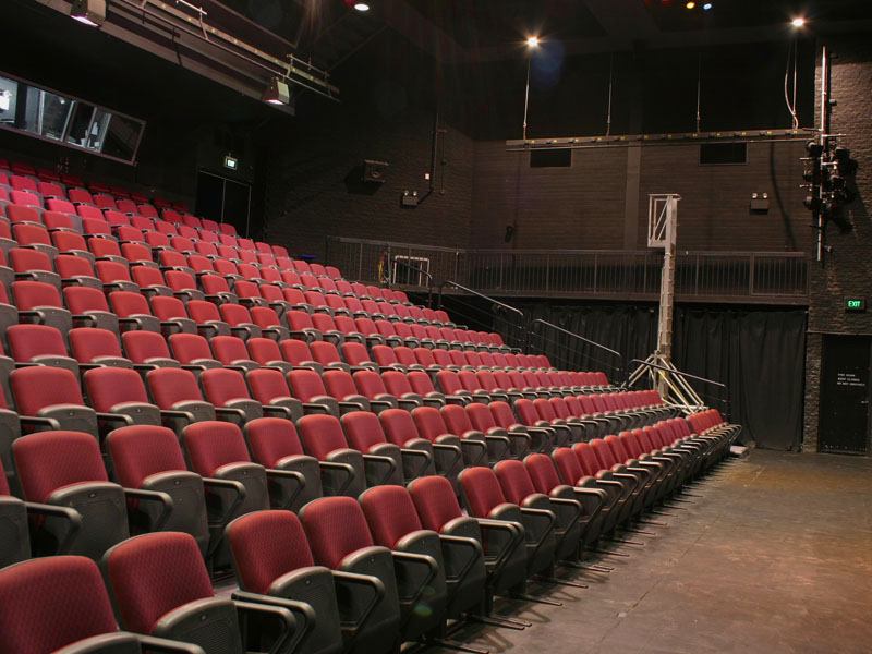 The Geoff Gibbs Theatre is a proscenium arch theatre that has a maximum seating capacity of 297. The main stage area is 10m x 9.9m with an apron 6.1m deep. The apron floor is removable to accommodate an orchestra pit. Backstage facilities include dressing rooms to accommodate a total of 38 performers plus wardrobe maintenance facilities.